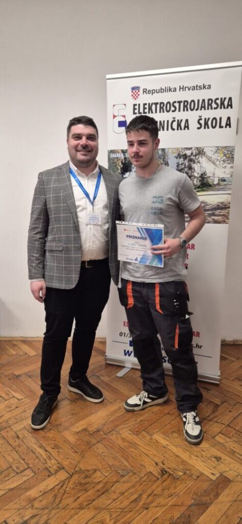 Na izlučnom natjecanju učenika strukovnih škola u disciplini Električne instalacije, održanom 20. veljače 2025. godine s početkom u 09:00, naš učenik Marko Vidoša osvojio je 2. mjesto. Prvo mjesto osvojio je Leon Opčević iz Elektrostrojarske škole Varaždin, a treće mjesto pripalo je učeniku Ivanu Martinjaku iz Srednje škola Krapina. Zahvaljujemo svima na sudjelovanju i čestitamo učenicima na postignutim rezultatima, a posebno našem Marku Vidoši!